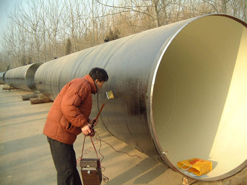 環(huán)氧煤瀝青防腐螺旋鋼管就是我們常說的幾布幾油,常見的有一布兩油,三布兩油,五步三油,七布四油。環(huán)氧煤瀝青防腐螺旋鋼管組份為環(huán)氧煤瀝青底漆和面漆,都是以環(huán)氧樹脂和煤瀝青為主要成膜物,添加各種防銹顏料、絕緣性填料、增韌劑、流平劑、稀釋劑、防沉劑等制成。外觀:底漆甲組分鐵紅色,乙組分黑色,面漆均為黑色。具有優(yōu)異的耐化學介質腐蝕性和良好的物理機械性能,粘結力好,涂膜堅韌,并有優(yōu)異的電絕緣性和抗?jié)B透性,抗雜散電流和抗微生物侵蝕性,成膜后,可減少施工道數(shù)。主要的執(zhí)行標準SY/T 0447-96《埋地鋼質管道環(huán)氧煤瀝青防腐層技術標準》和SY/T 0457-2000《鋼質管道液體環(huán)氧涂料內防腐層技術標準》。主要用于埋地或水下鋼質輸油、輸氣、供水、供熱管道的外壁防腐,也適用于各類鋼結構、碼頭、船舶、水閘、煤氣儲罐、煉油化工廠設備防腐及混凝土管、污水池、樓頂防水層、衛(wèi)生間、地下室等混凝土結構的防水和防滲漏。